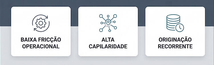 Conectamos parceiros de infraestrutura financeira e BaaS a uma demanda recorrente e pulverizada. Oferecemos um canal com características ainda pouco endereçadas pelos modelos tradicionais, garantindo potencial de volume e relevância estratégica desde o primeiro dia.